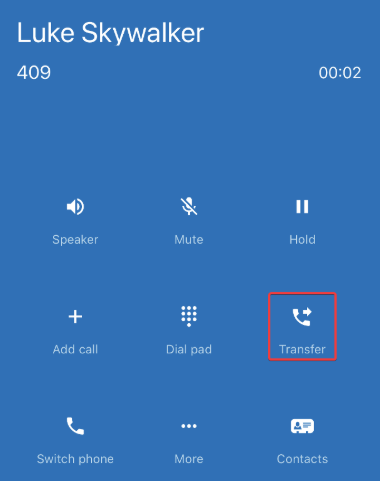 - Dial or select the contact then choose whether to use a blind or assisted transfer